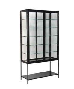 ארון גלאס מטאל קלי בעיצוב אורבני. רהיט איחסון ותצוגה המורכב 5 מדפים ודלתות פתיחה מזכוכית.