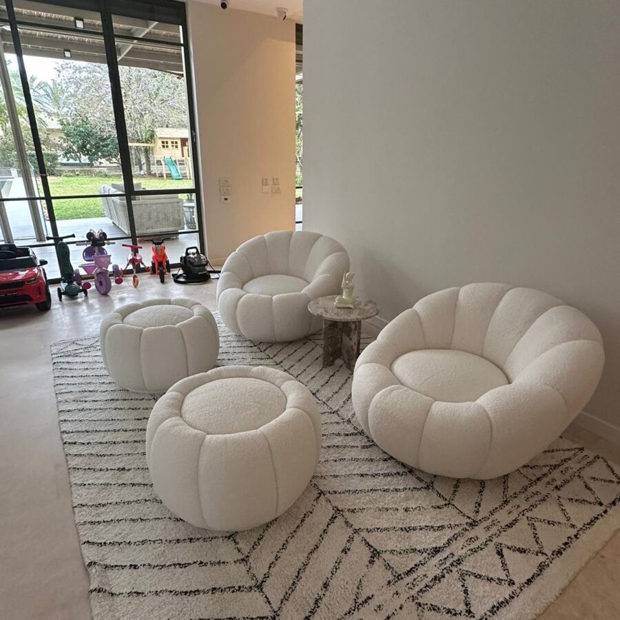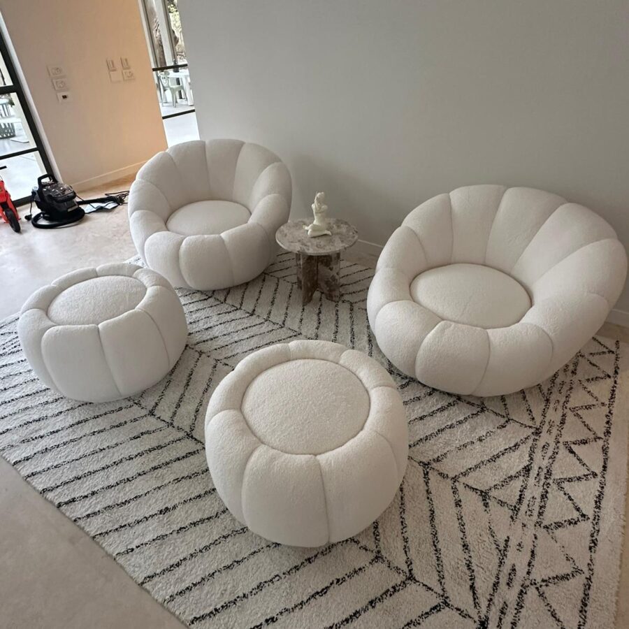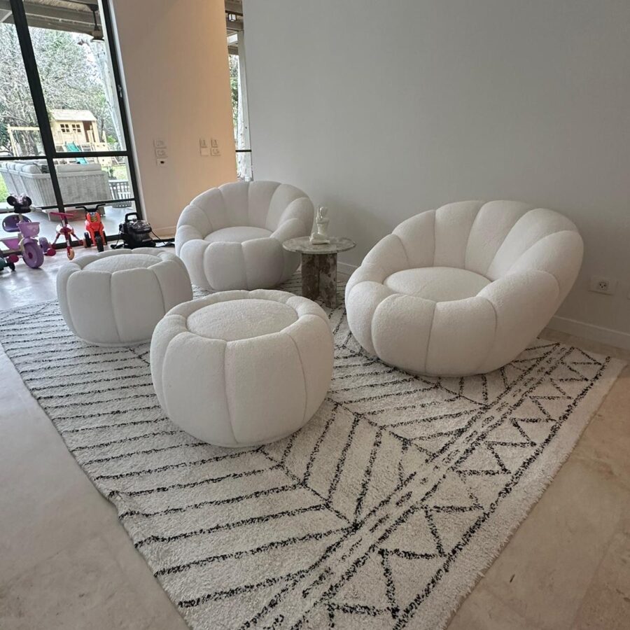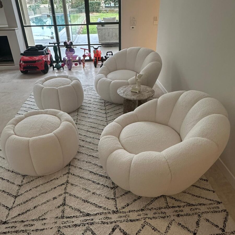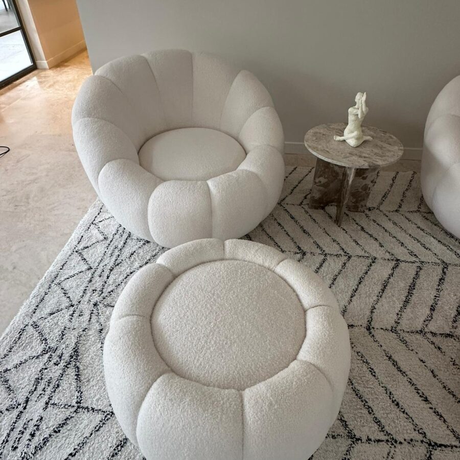 הכורסא מגיעה ביחד עם ההדום הם עשויות מבד בוקלה