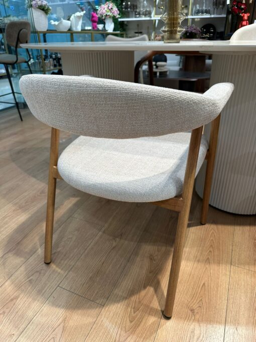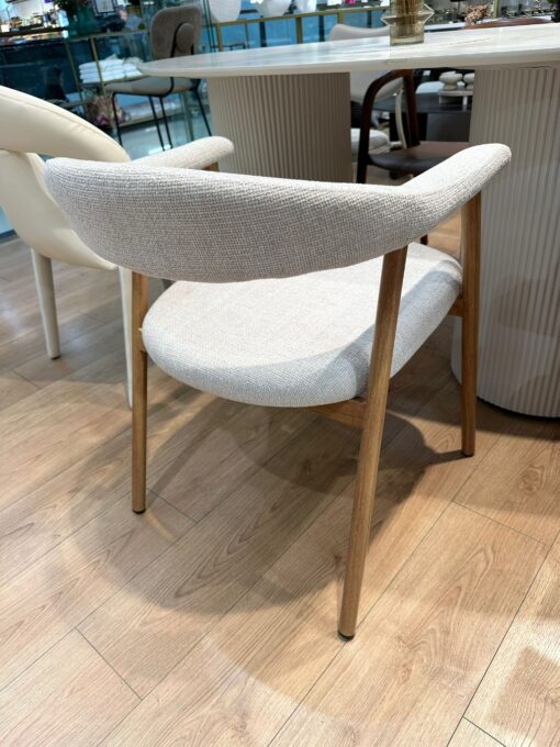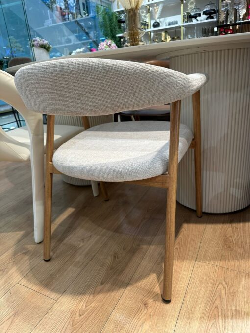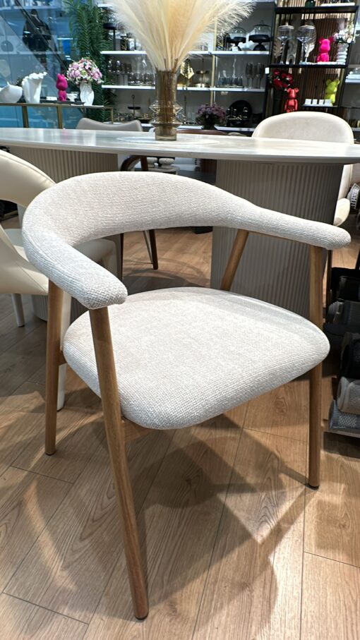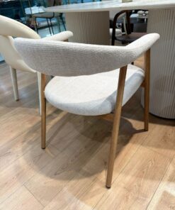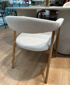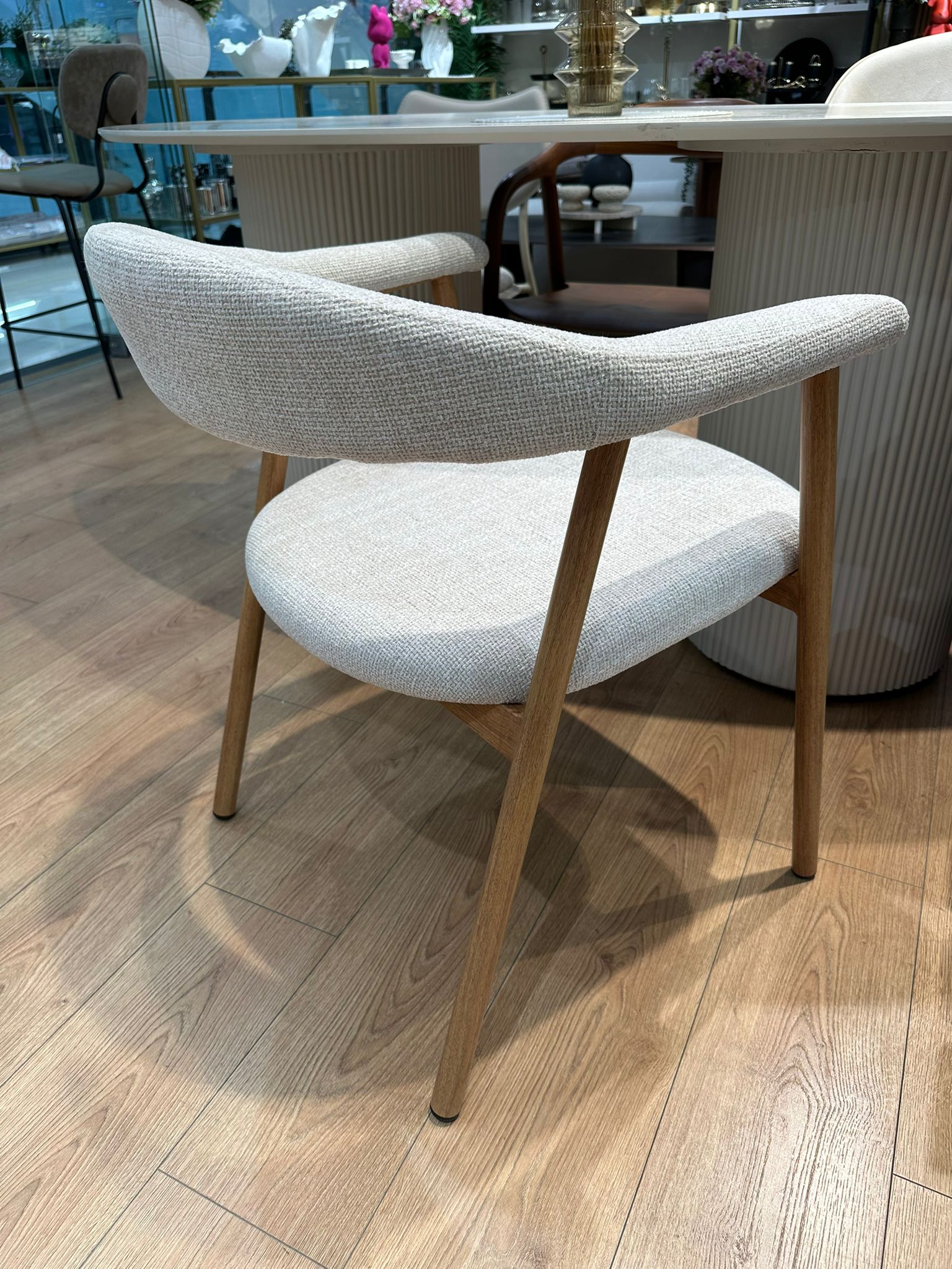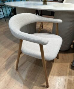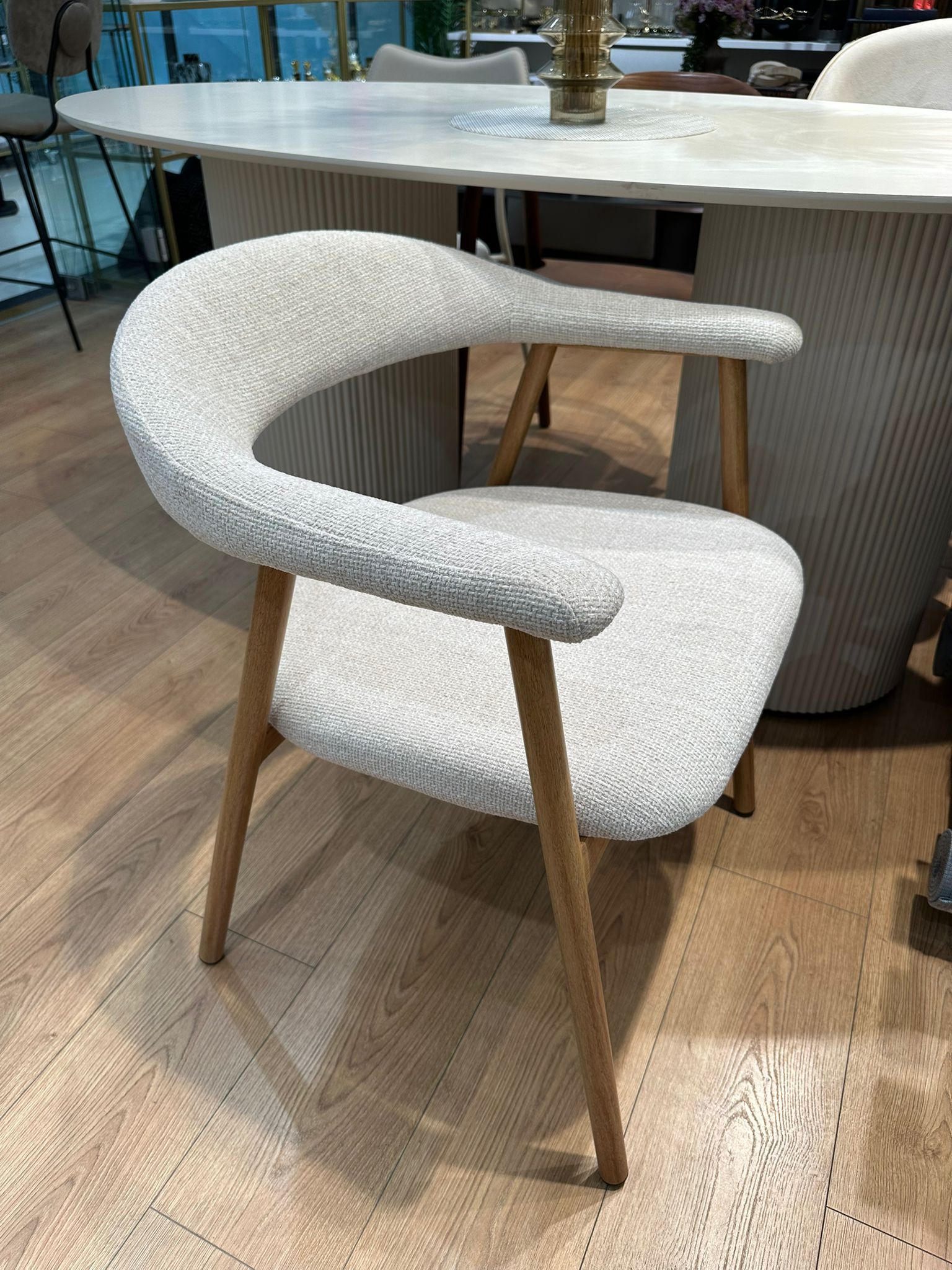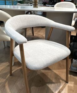 כיסא אוכל דגם אורן, בעיצוב מודרני מושלם. כסא איכותי ונוח לישיבה, רגלי עץ אלון טבעי מרופד בבד ארוג יוקרתי בגוון אבן. משדרג כל חלל ישיבה בבית! מידות: