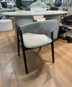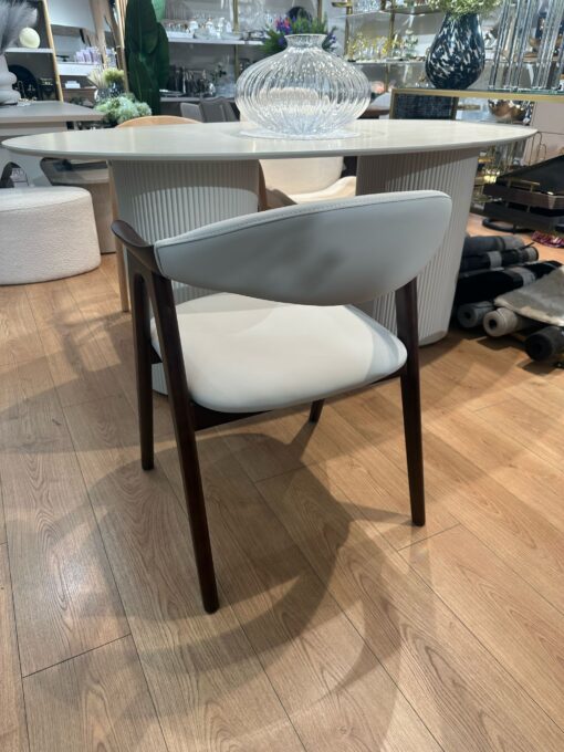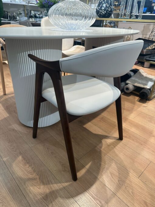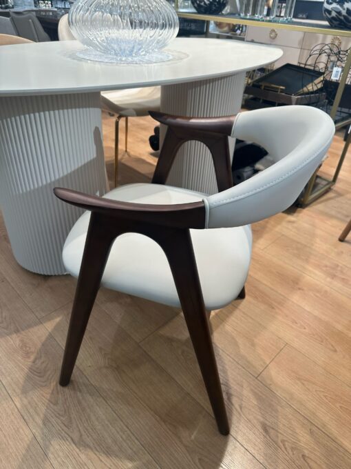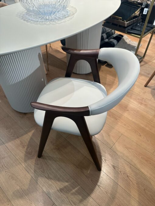 כסא אוכל מייקל – אגוז מרופד שמנת דמוי עור