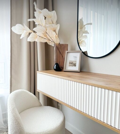 קונסולה מרחפת דגם "BELA" עם מסגרת – אלון טבעי/לבן