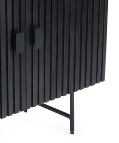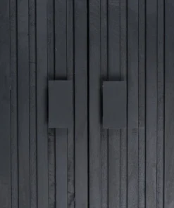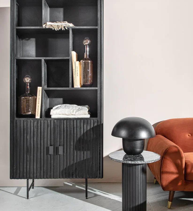 ארון מדפים מלבני גבוה עשוי עץ מנגו במראה אדג'י בצבע שחור.