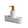 דיספנסר לסבון נוזלי בעל תא ייעודי לספוג המטבח. מעוצב בטקסטורת פסים.