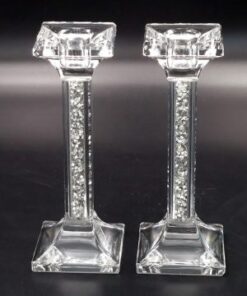 זוג פמוטי קריסטל יוקרתיים בתוספת רסיסים כסופים מנצנצים המשרים אוירה קדושה לכבוד שבת .