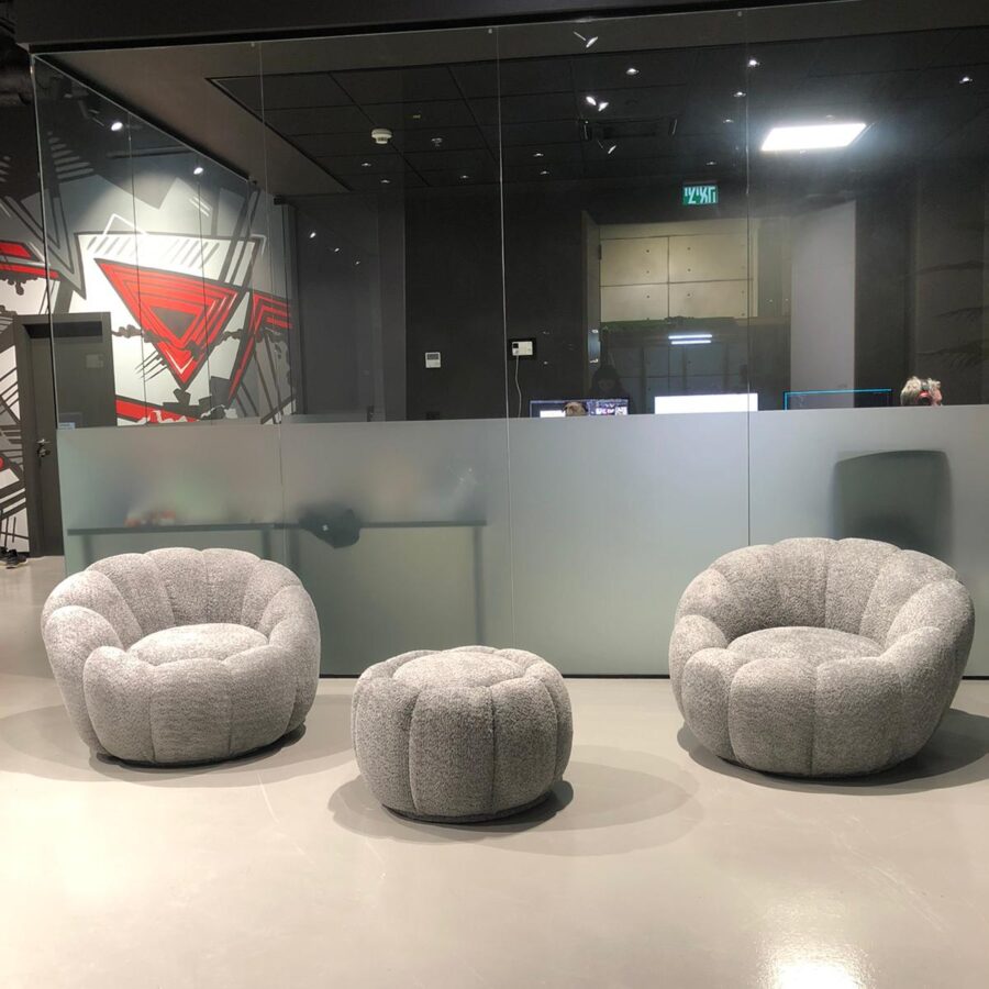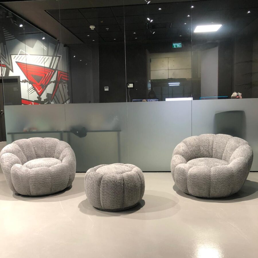 הכורסא מגיעה ביחד עם ההדום הם עשויות מבד בוקלה
