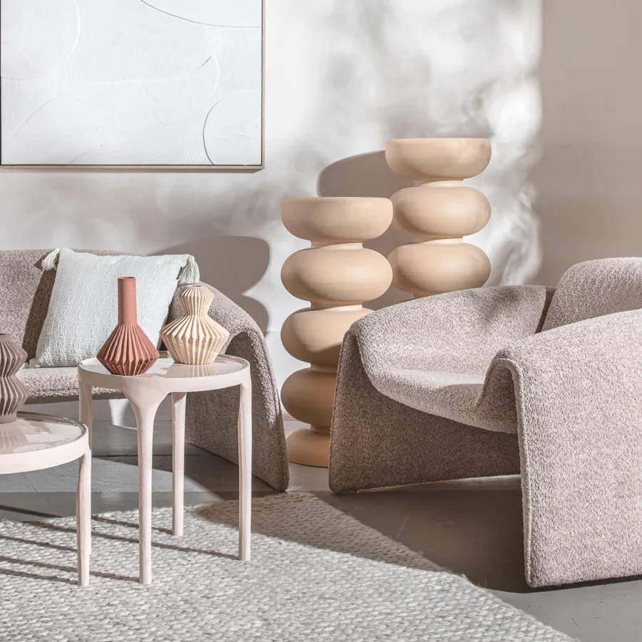 כורסאת ישיבה מקשה אחת בצבע בז'.