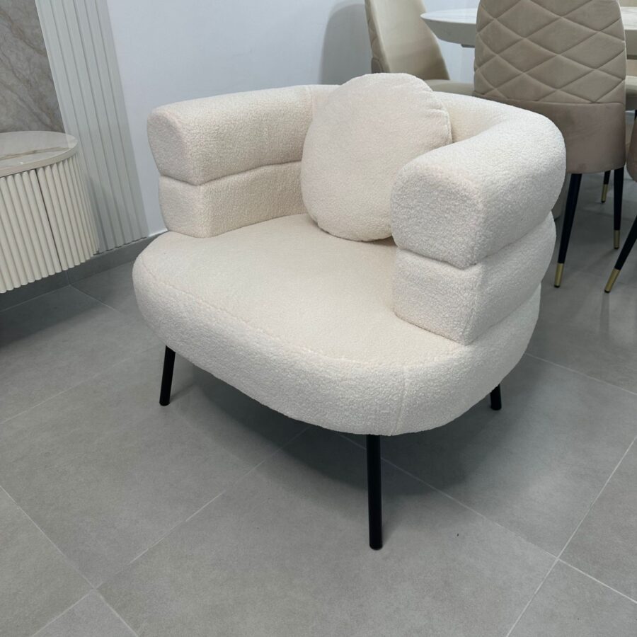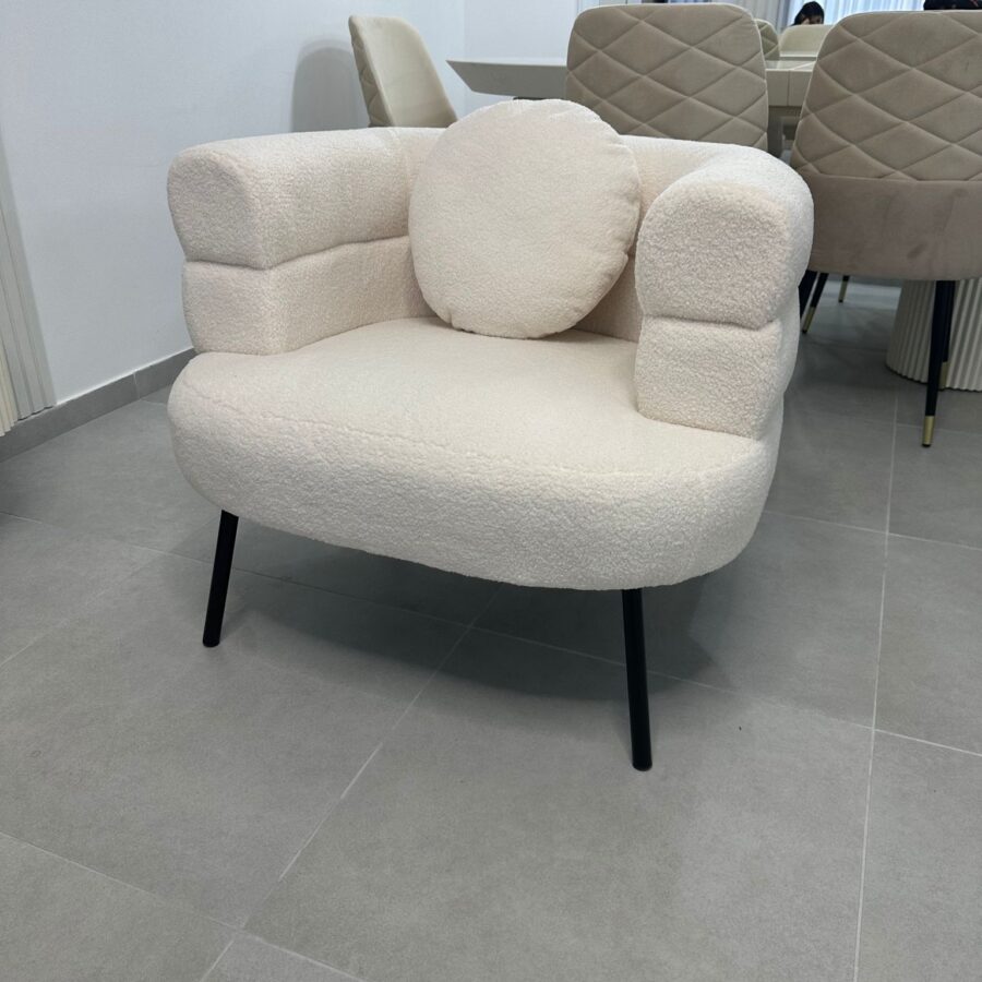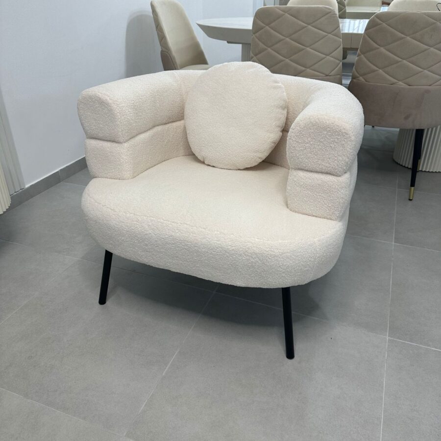 כורסא רנה בוקלה בז' רגל שחורה – יחיד