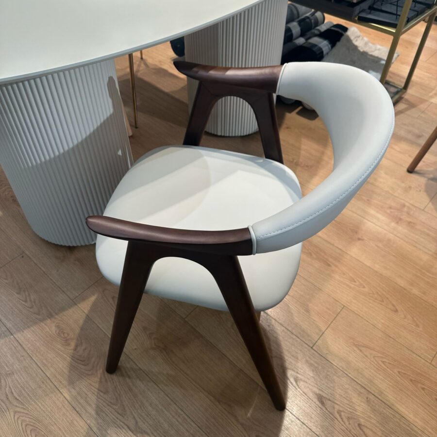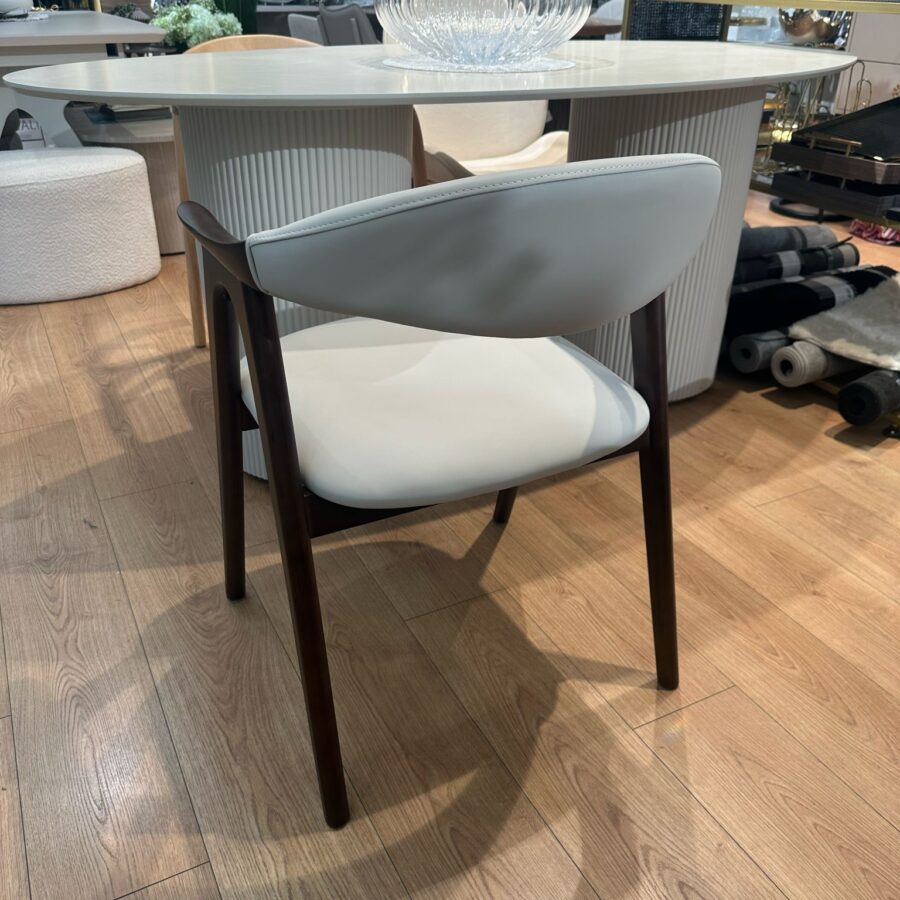 כסא אוכל מייקל – אגוז מרופד שמנת דמוי עור
