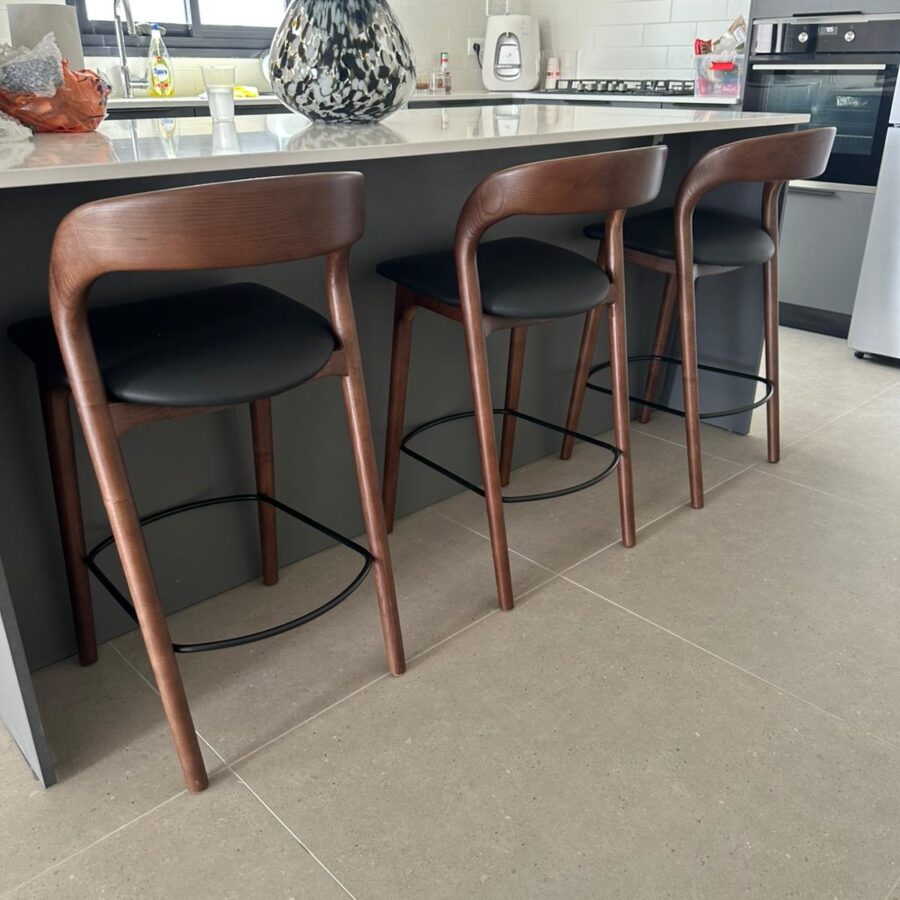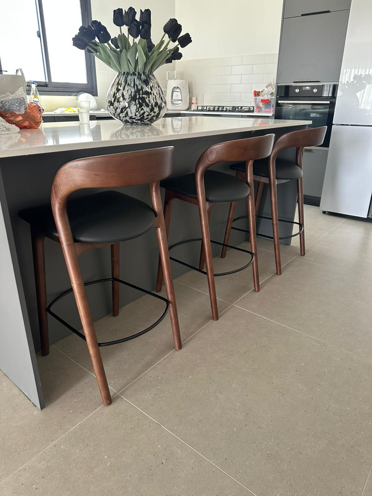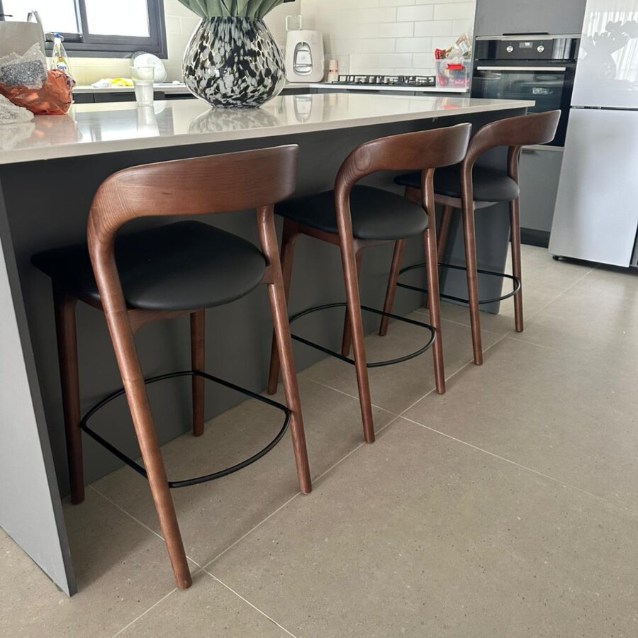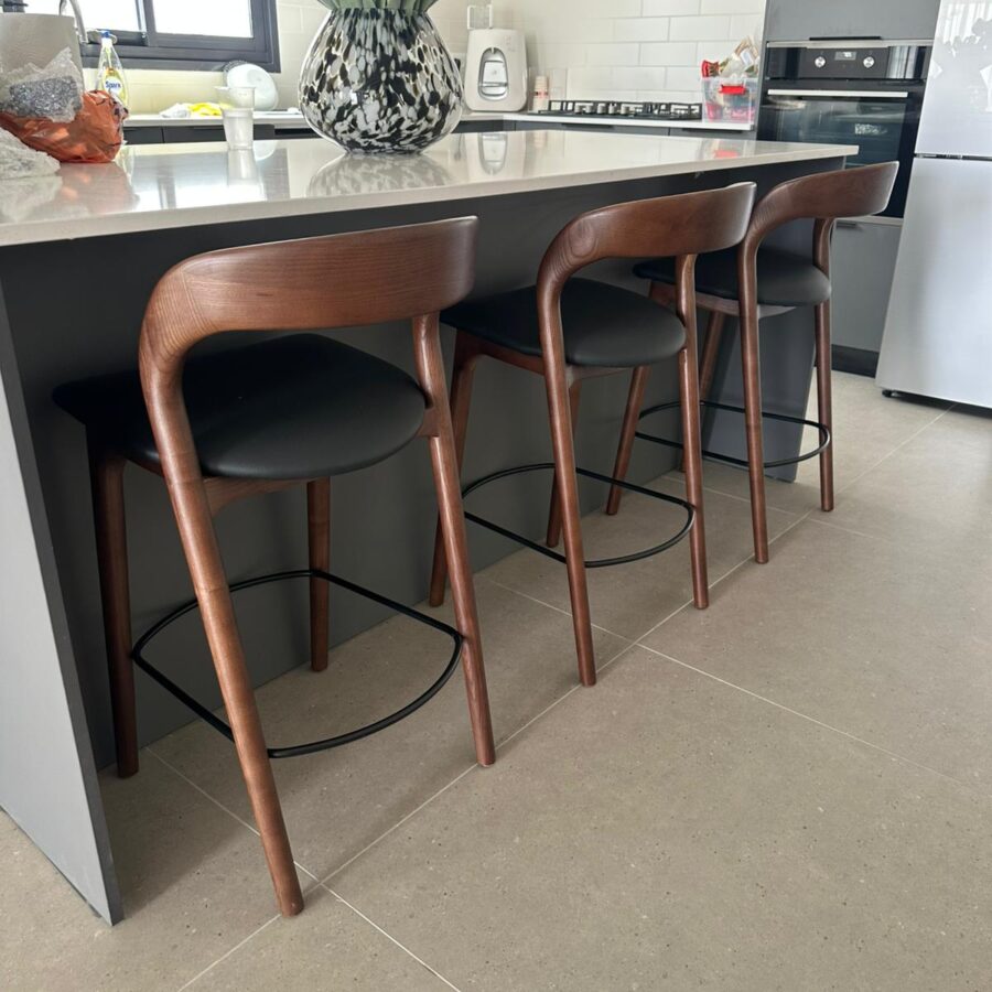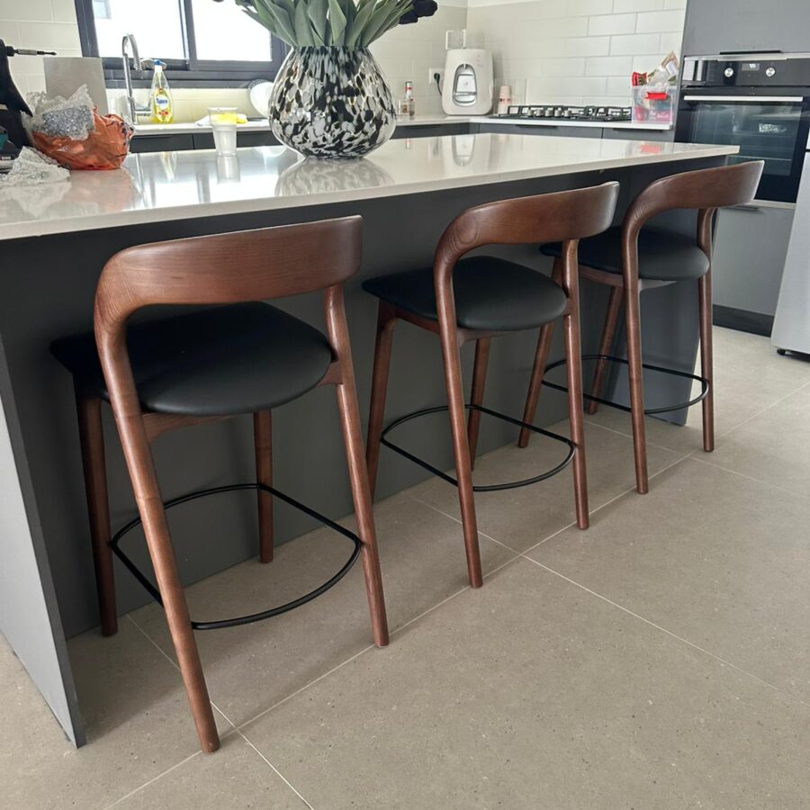 כסא בר ג'ורדן – אגוז מושב דמוי עור שחור