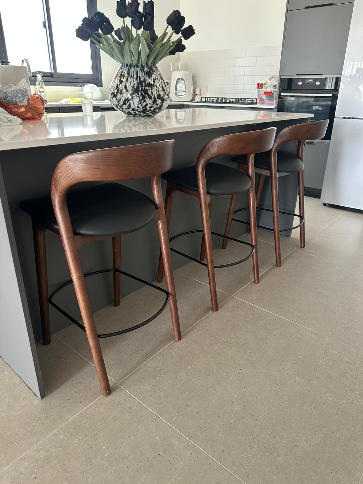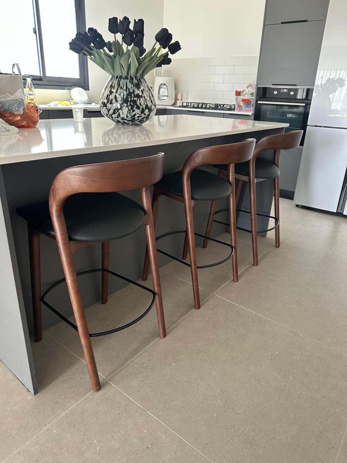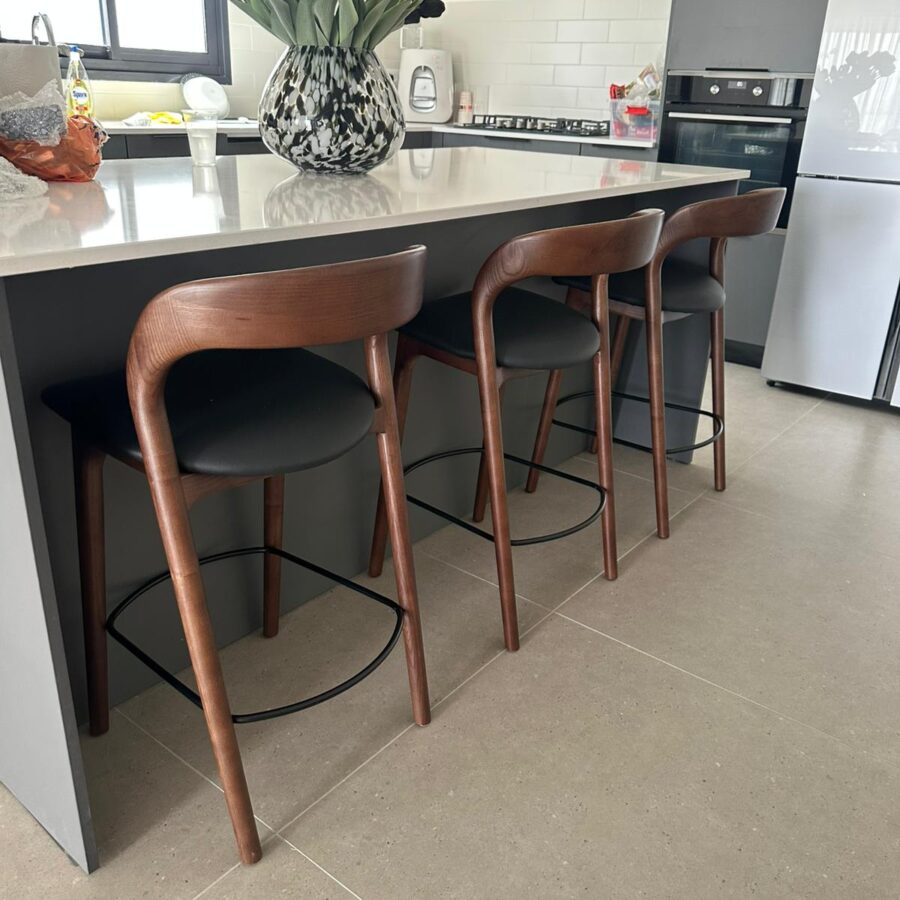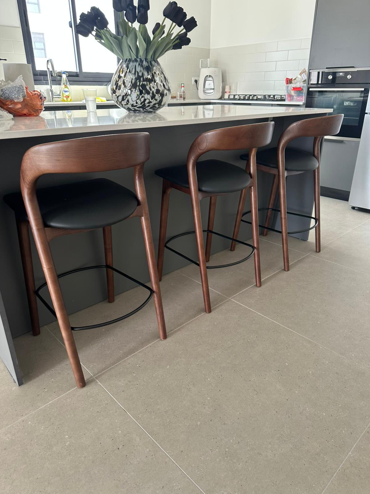 כסא בר ג'ורדן – אגוז מושב דמוי עור שחור