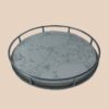 מגש זכוכית כהה עם רגלי כדורים מניקל שחור.