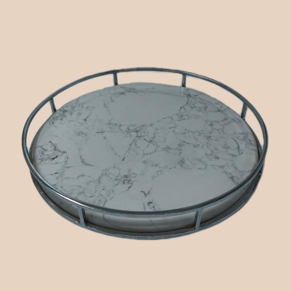 מגש עגול בתוספת שיש שלבן עם שילוב כסף