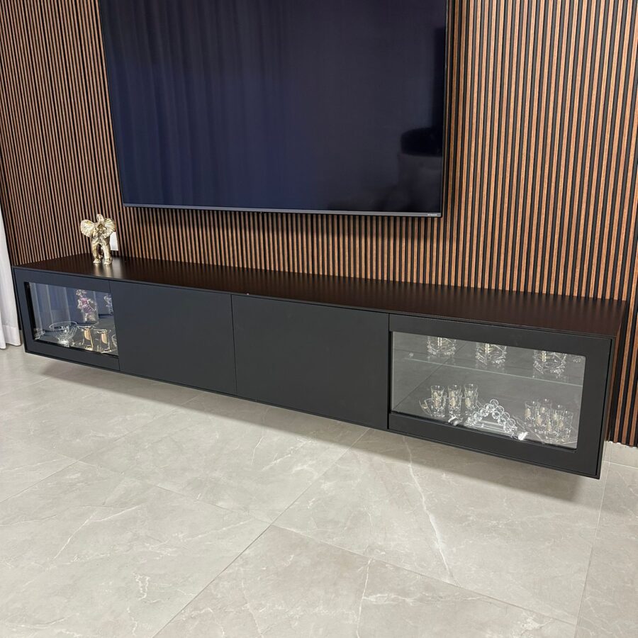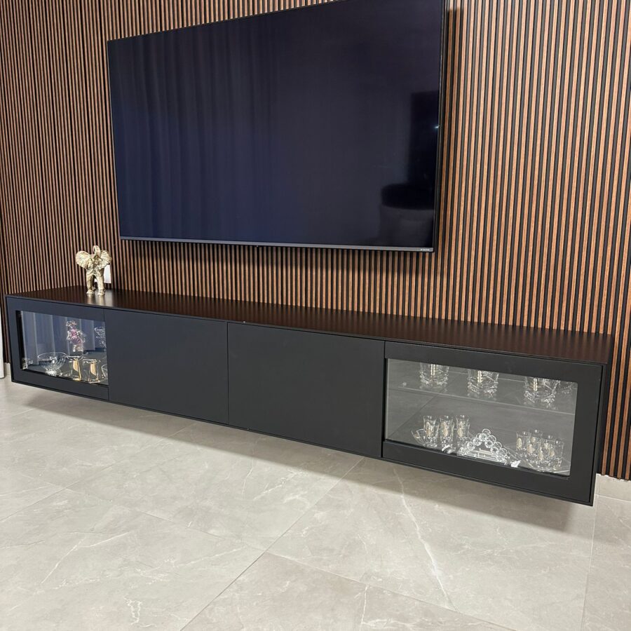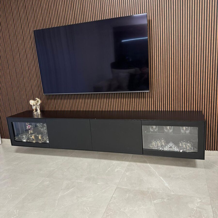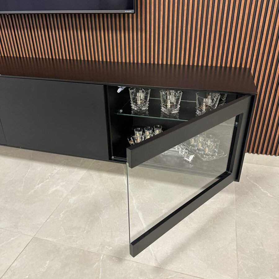 למזנון 2 מגירות/קלפות ו 2 דלתות זכוכית לאחסון