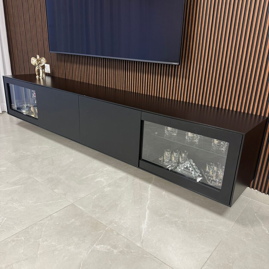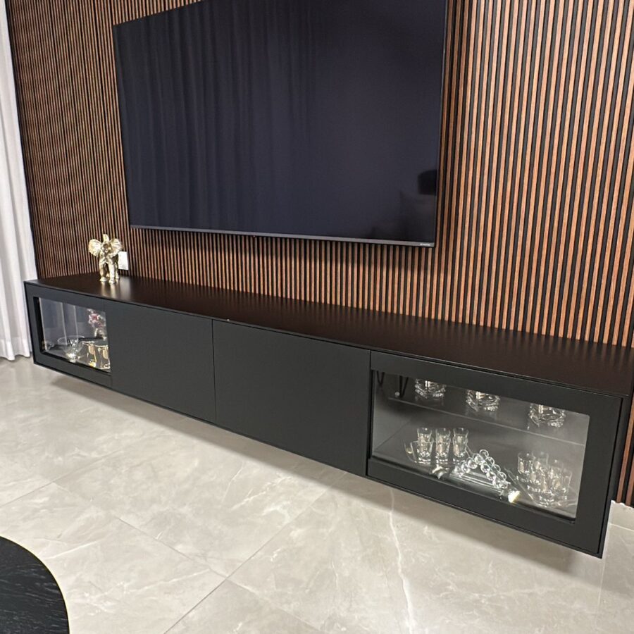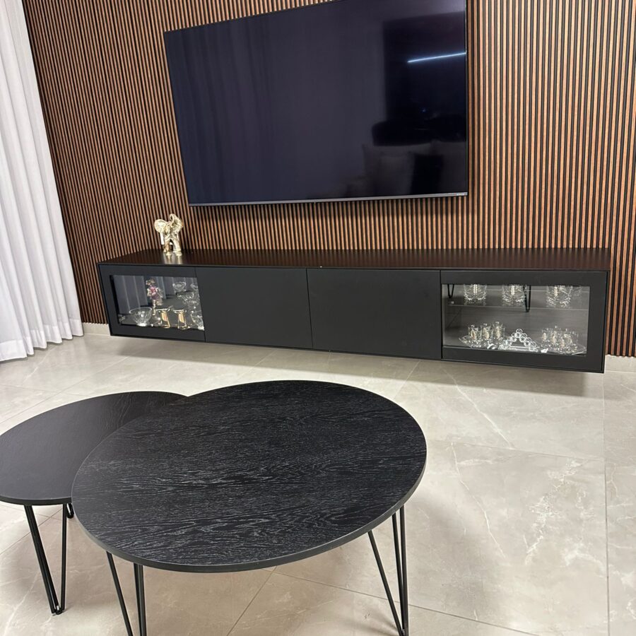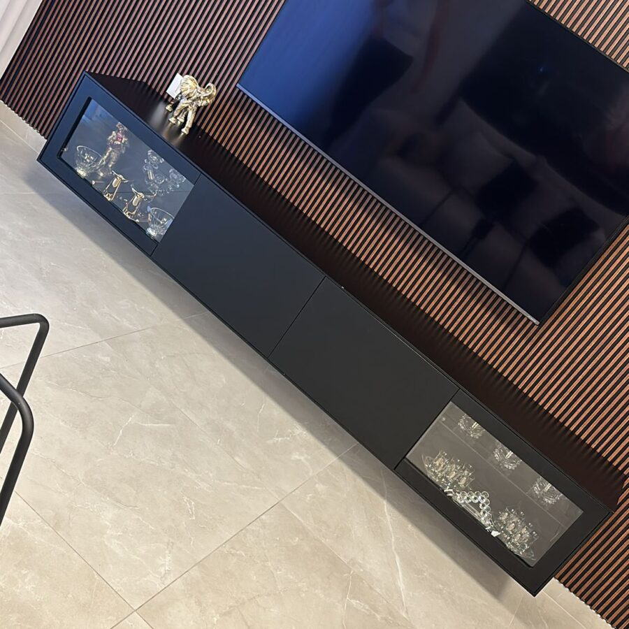 למזנון 2 מגירות/קלפות ו 2 דלתות זכוכית לאחסון