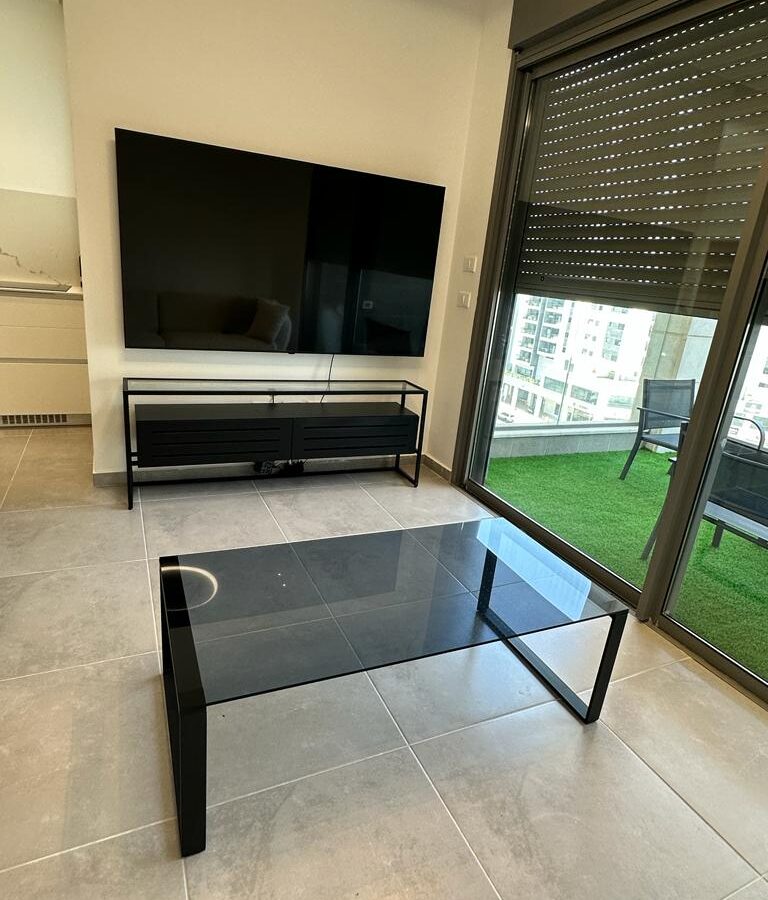 מזנון עשוי עץ איכותי בצביעה בתנור בשילוב זכוכית ורגלי מתכת אל חלד בצבע שחור