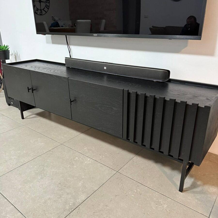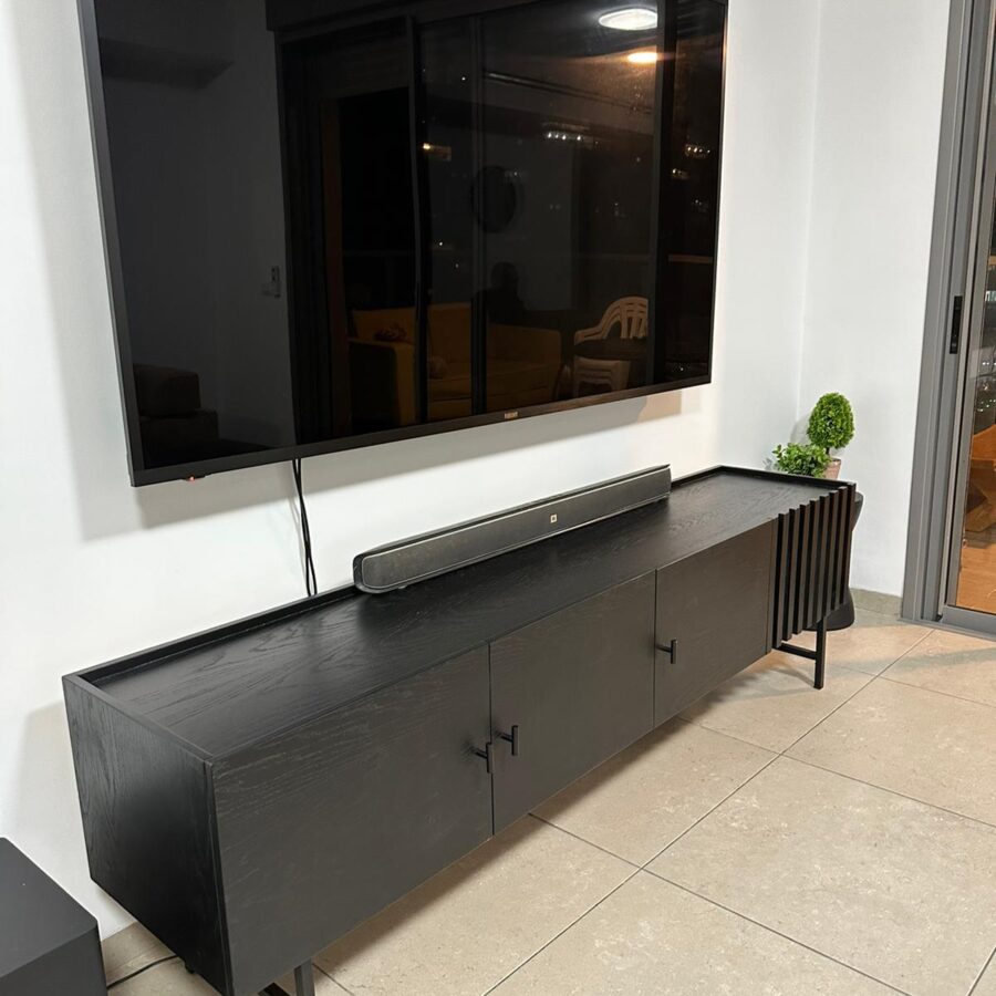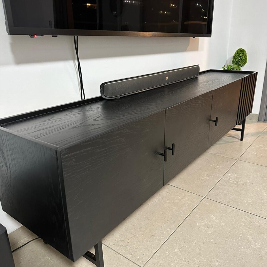 מזנון עשוי עץ איכותי בצביעה בתנור ורגלי מתכת אל חלד בצבע שחור