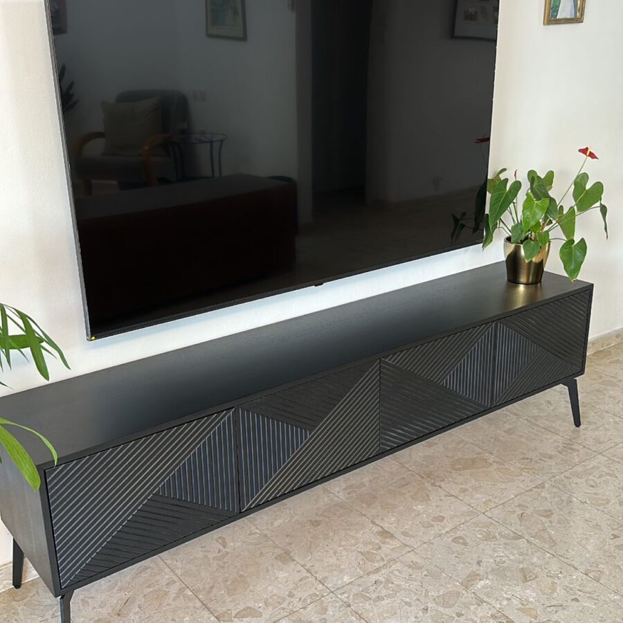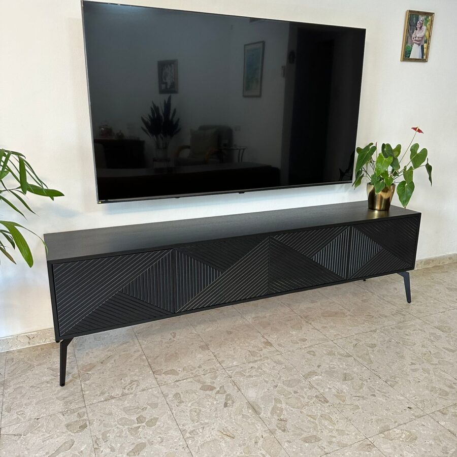 מזנון עשוי עץ איכותי בצביעה בתנור ורגלי מתכת אל חלד בצבע שחור