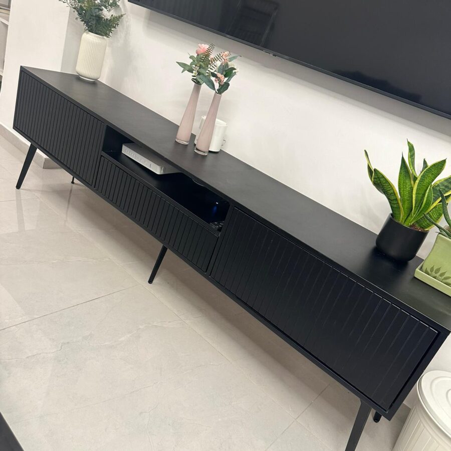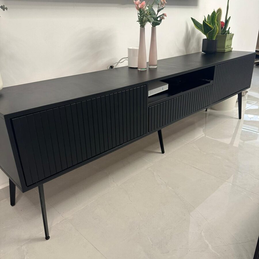 מזנון עשוי עץ איכותי בצביעה בתנור ורגלי מתכת אל חלד בצבע שחור