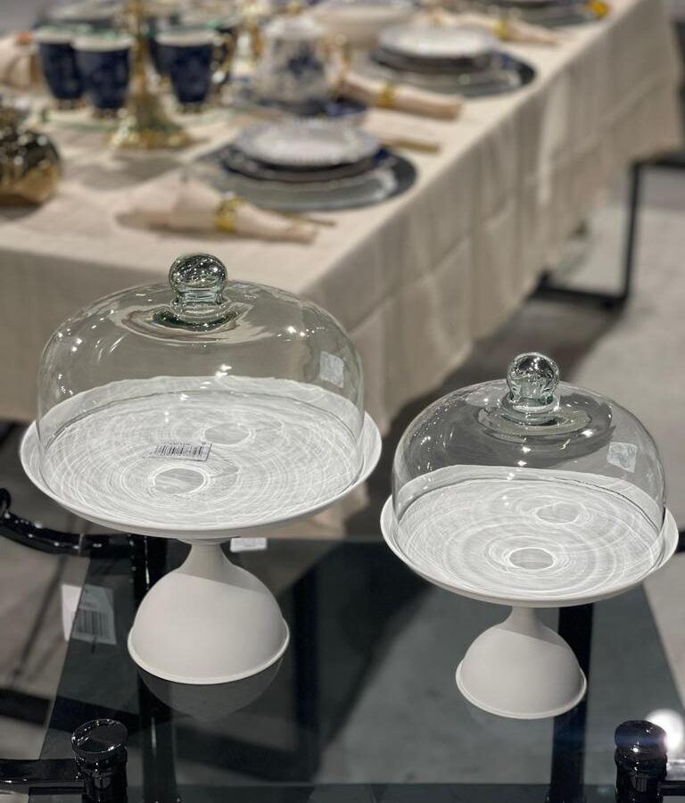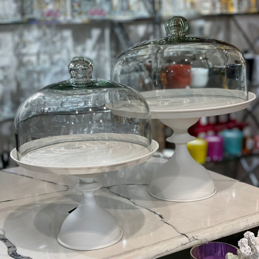 מעמד לעוגה על רגל פעמון זכוכית – לבן