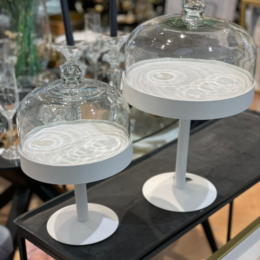 מעמד לעוגה על רגל פעמון זכוכית – לבן