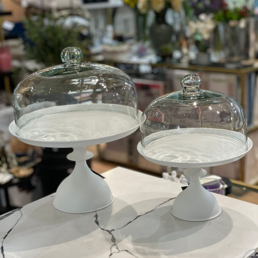 מעמד לעוגה על רגל פעמון זכוכית – לבן