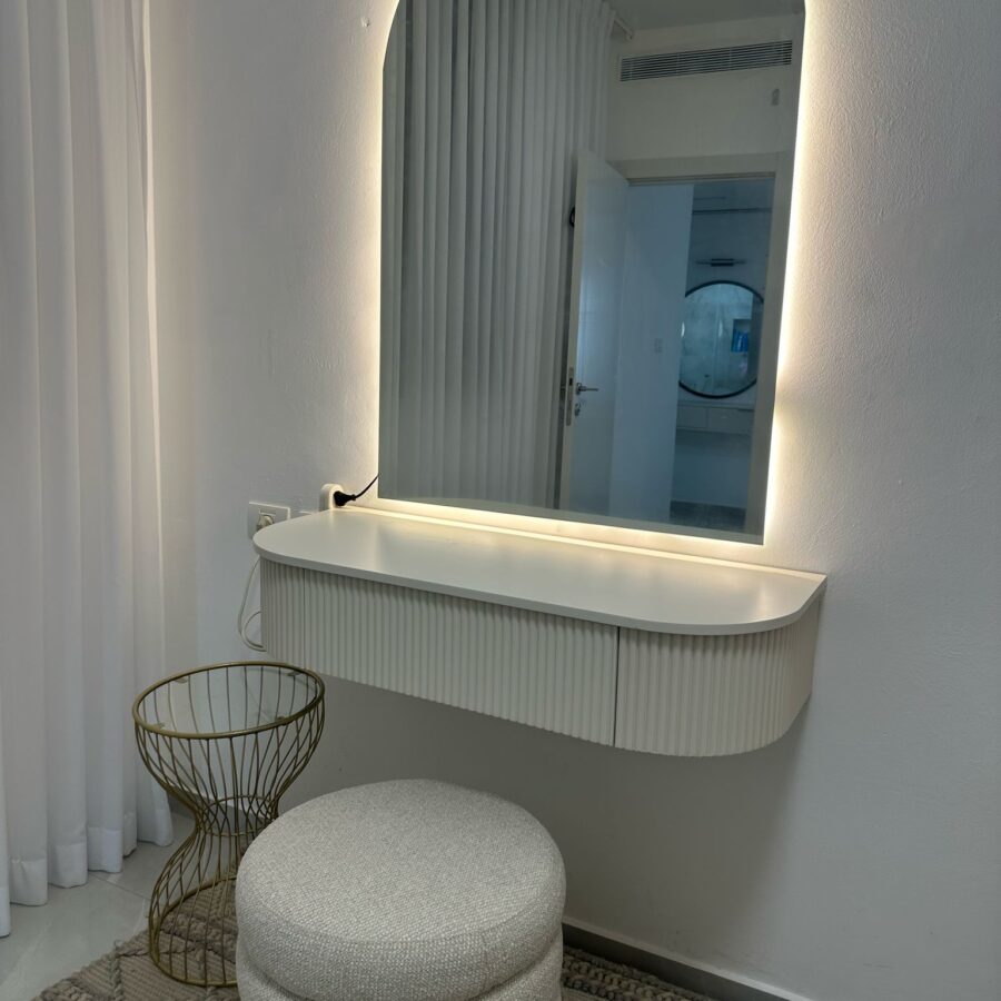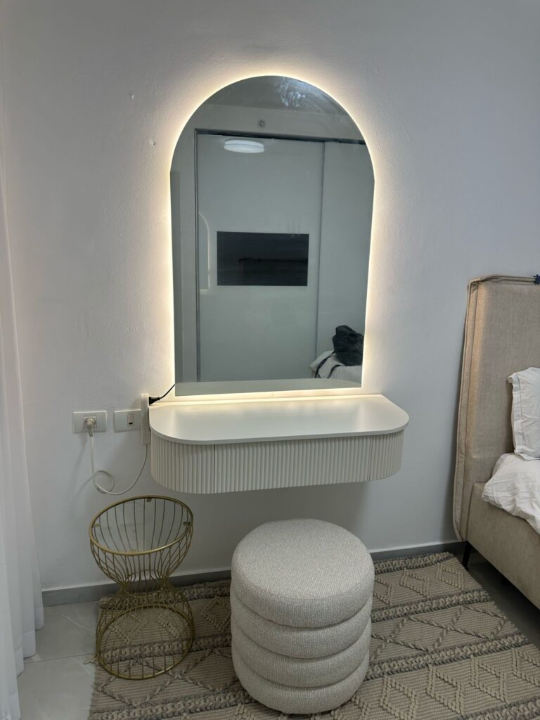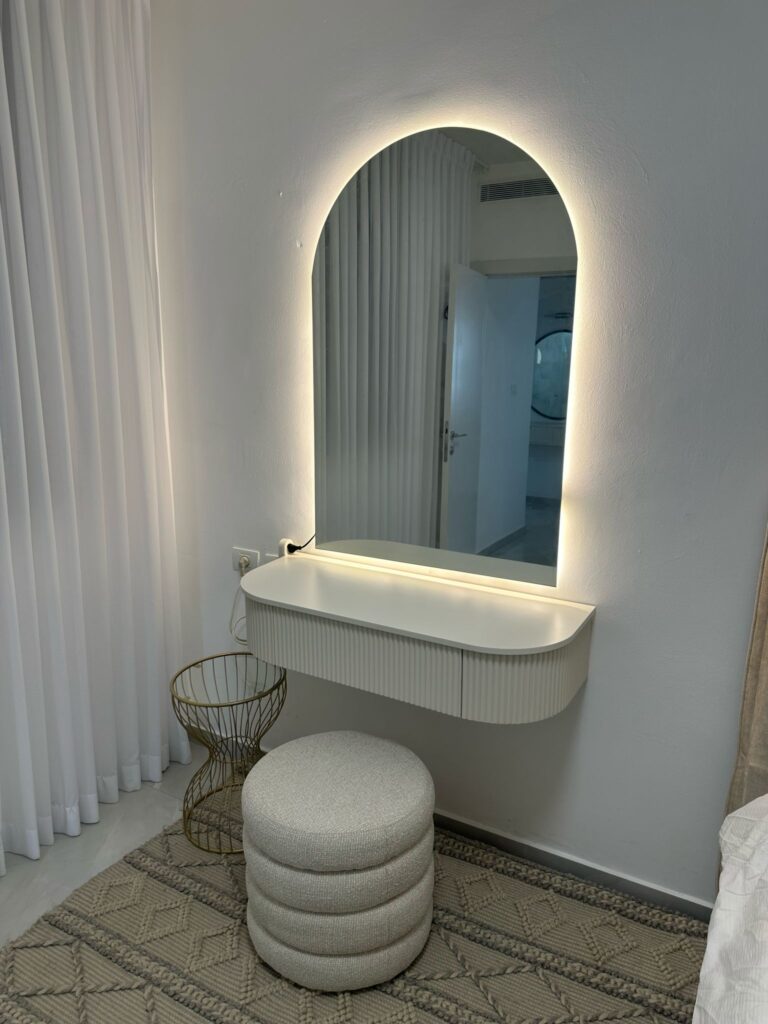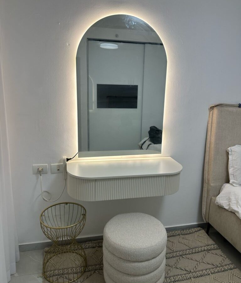 מראה חצי מעוגלת מרחפת – ללא מסגרת