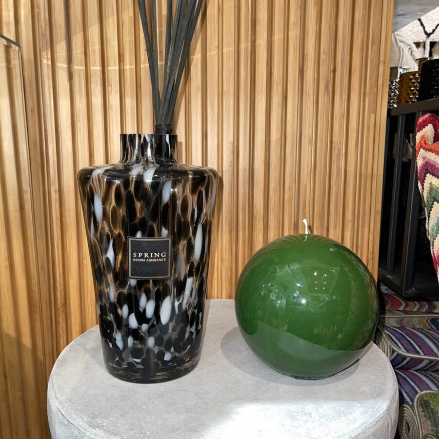 נר בעיצוב כדור באולינג מבריק המוסיף סטייל לכל החלל בבית.