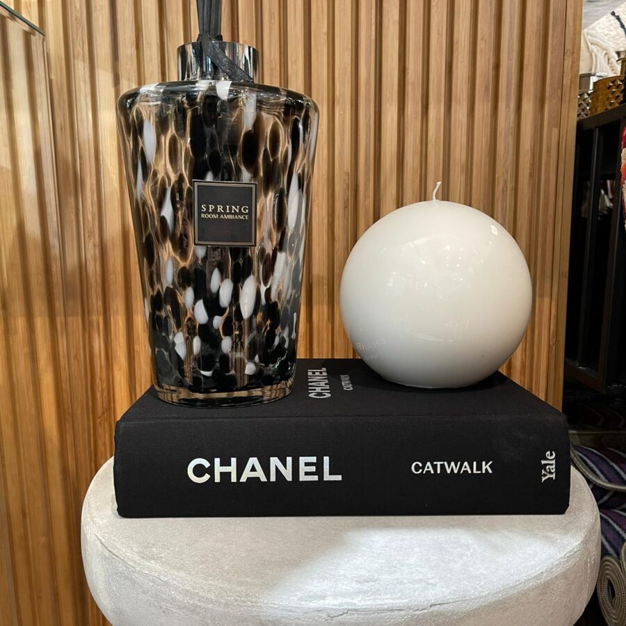 נר בעיצוב כדור באולינג מבריק המוסיף סטייל לכל החלל בבית.