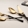 סט סכו"ם 24 חלקים נירוסטה זהב ידיות לבן – מט