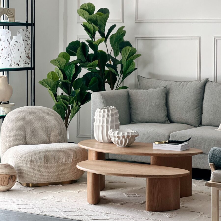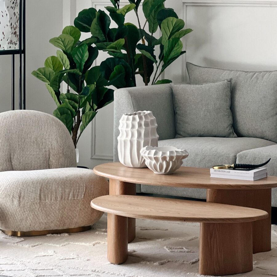 סט שולחנות מדהימים עם גימורים מעוגלים – Mdf ציפוי פורניר בצבע עץ אלון בהיר.