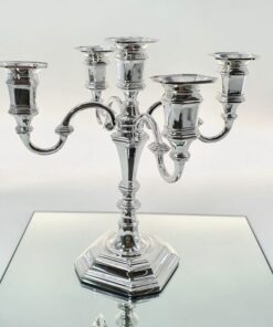 פמוט 5 קנים "אנגלי" בציפוי כסף איכותי ויוקרתי המשרה אוירה קדושה לכבוד שבת.