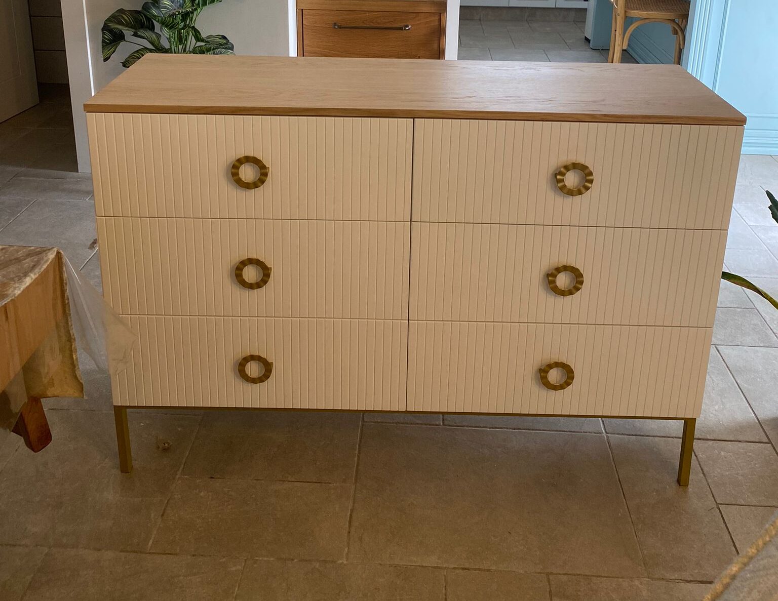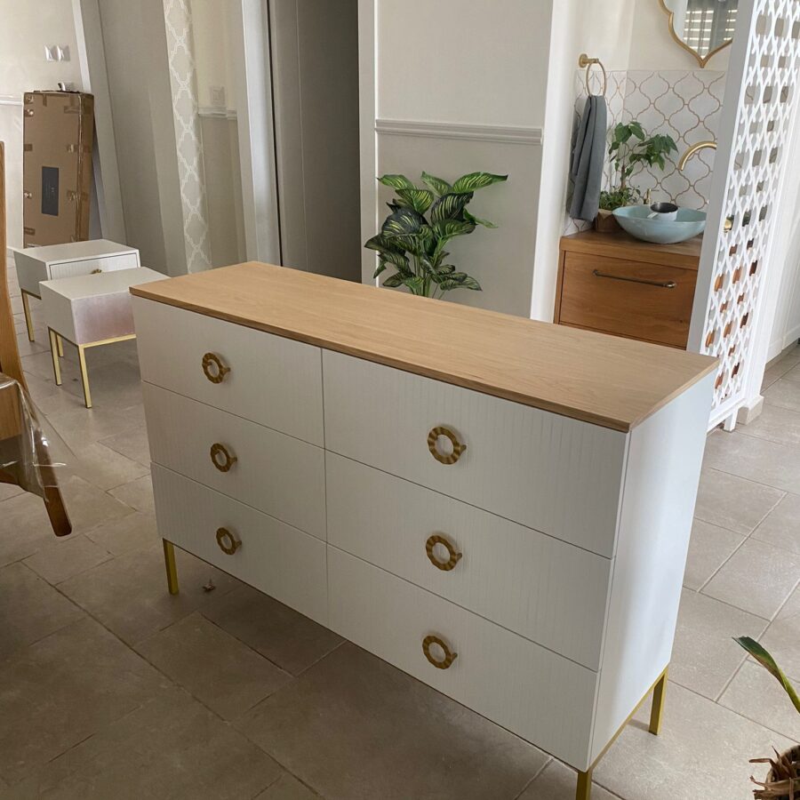 עם 6 מגירות טריקה שקטה בשילוב ידיות זהב מט