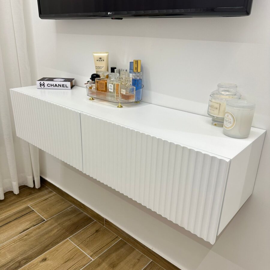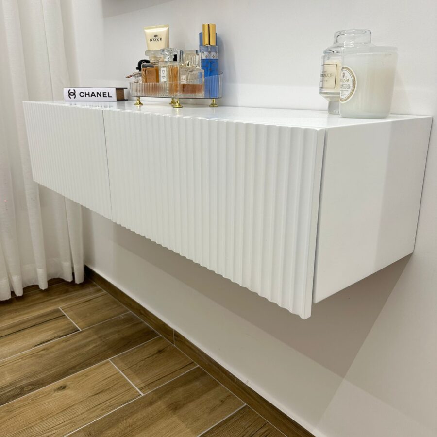 קונסולה מרחפת עשויה עץ איכותי צביעה בתנור בצבע לבן
