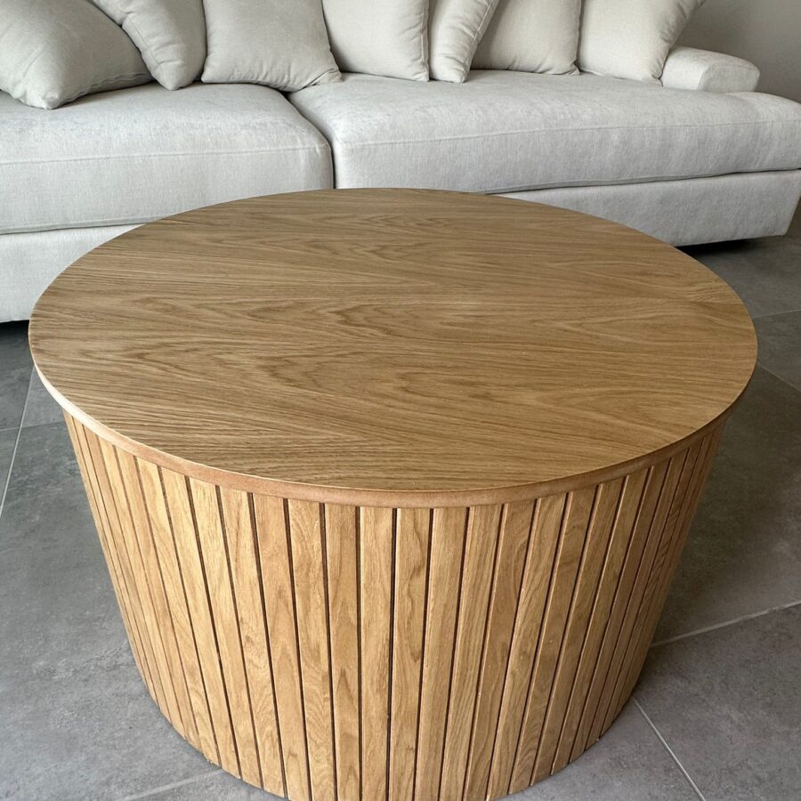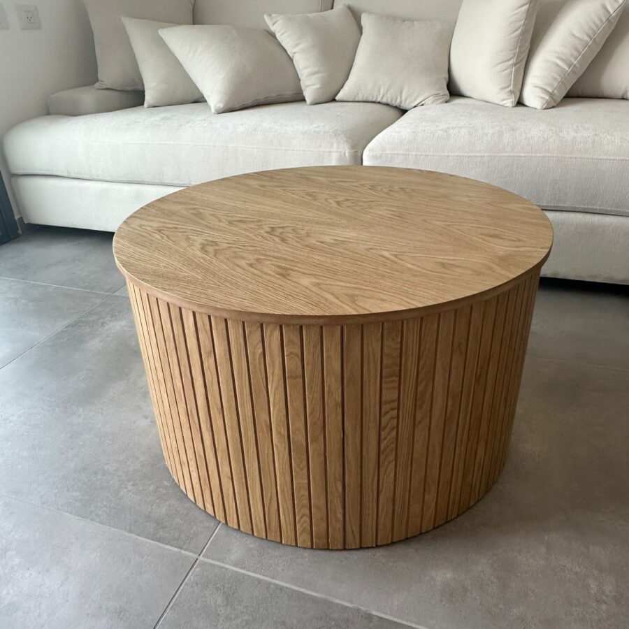שולחנות סלון איכותיים עשויים עץ איכותי בטקסטורת פסים וצביעה בתנור בצבע אלון טבעי