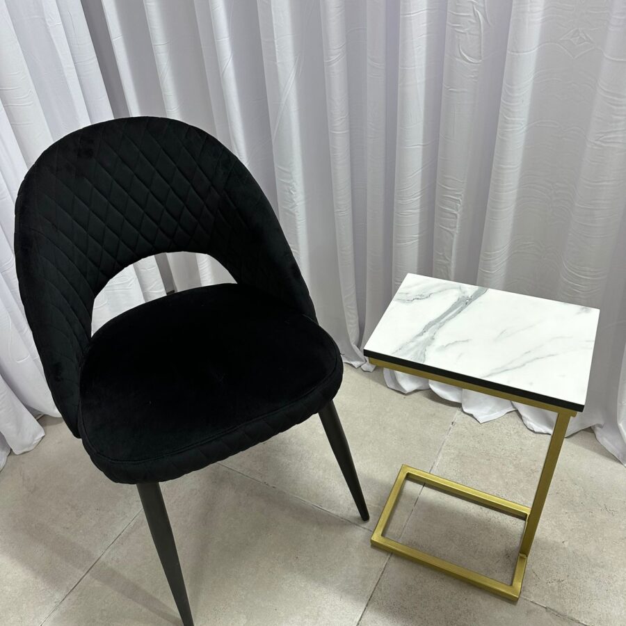 שולחן צד/נשכן – שיש לבן רגל זהב