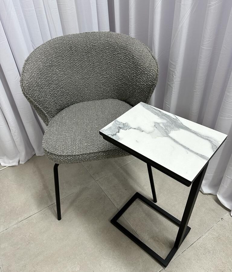 שולחן צד/נשכן – שיש לבן רגל שחורה
