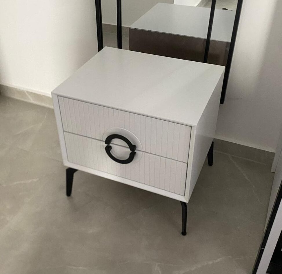 שידת צד דגם "GAL" פסים – לבן ידית שחורה