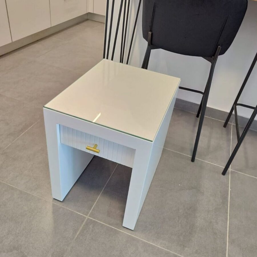 שידת צד עשויה רגלי עץ בצבע לבן צביעה בתנור