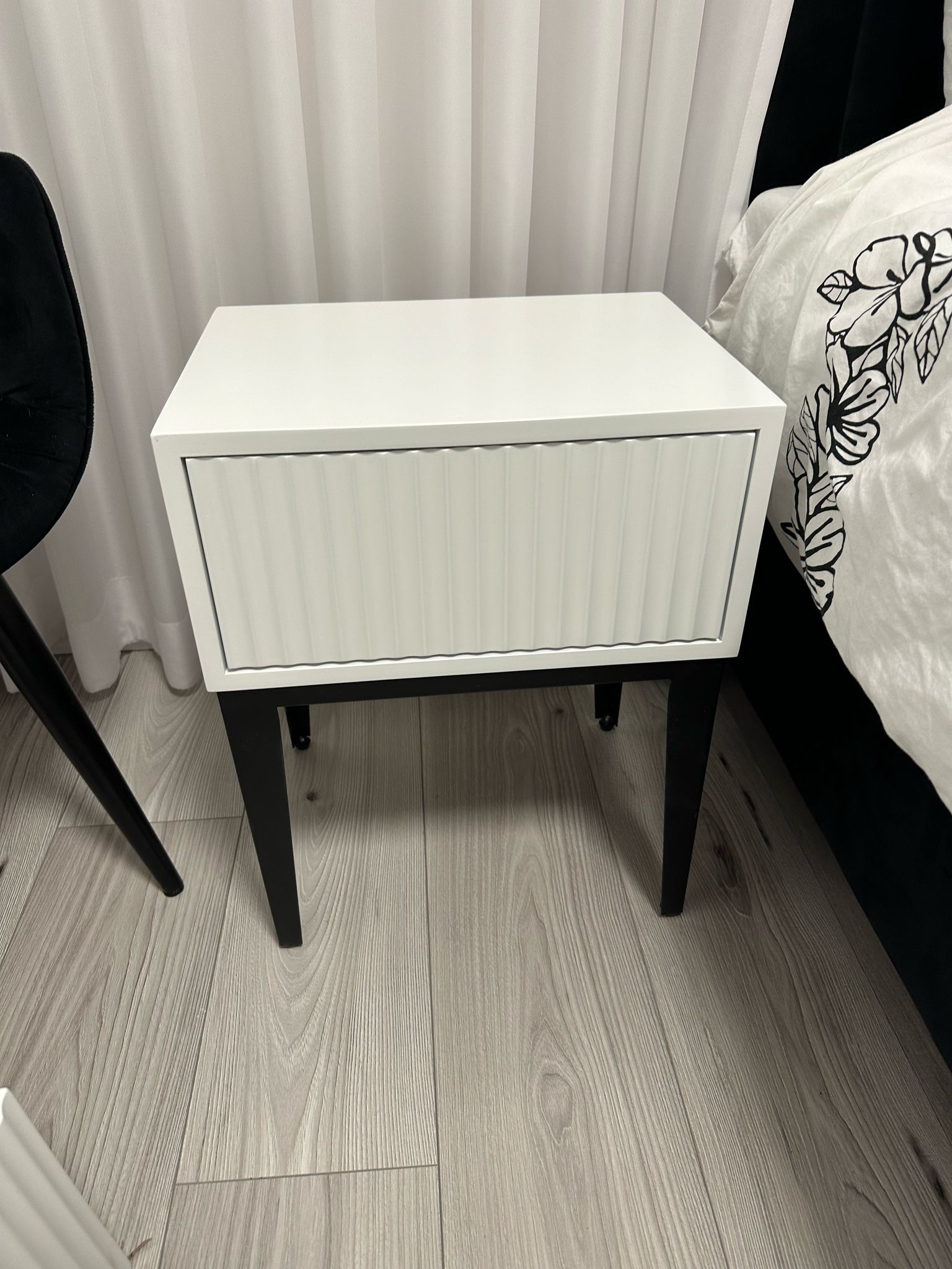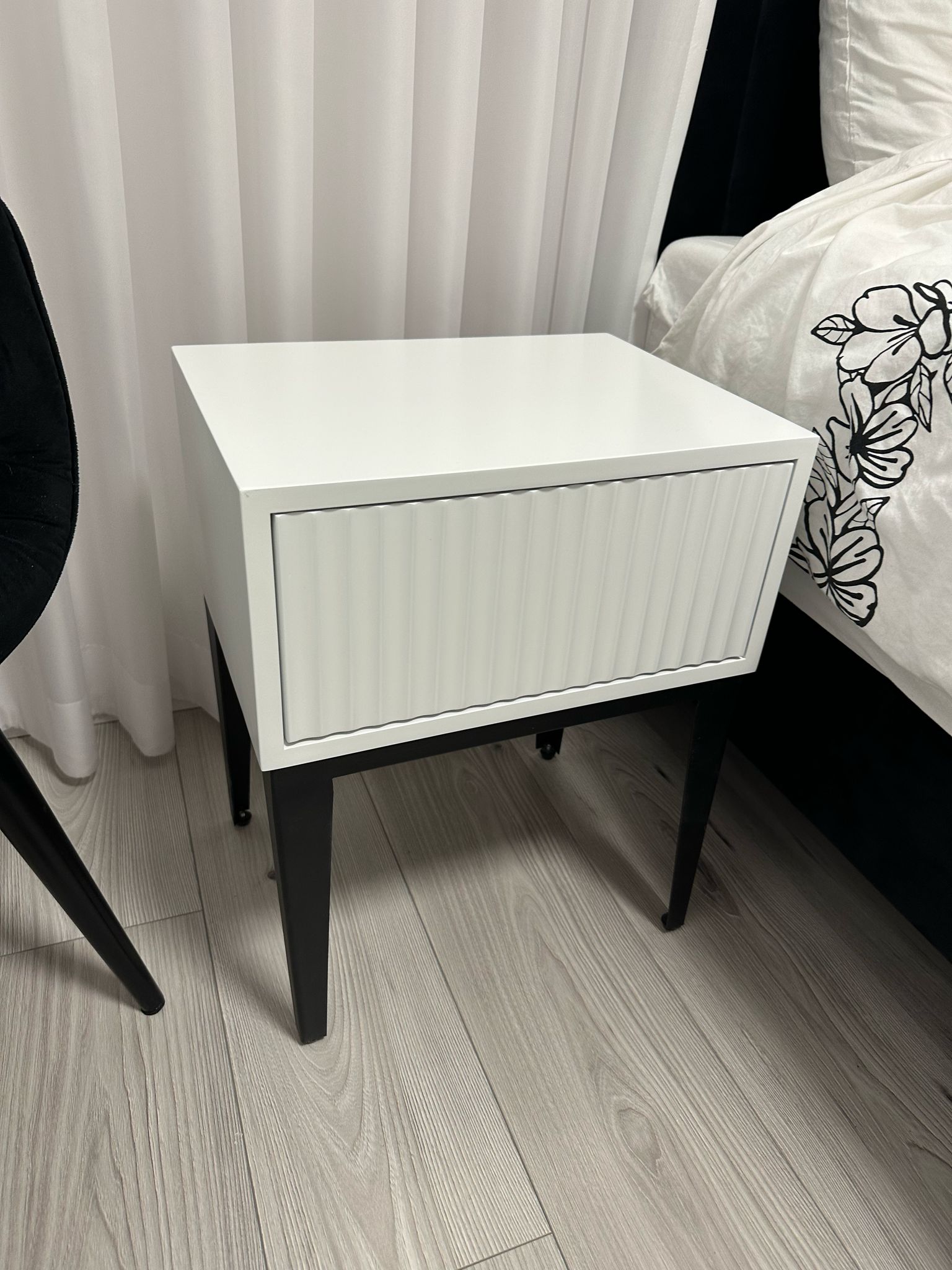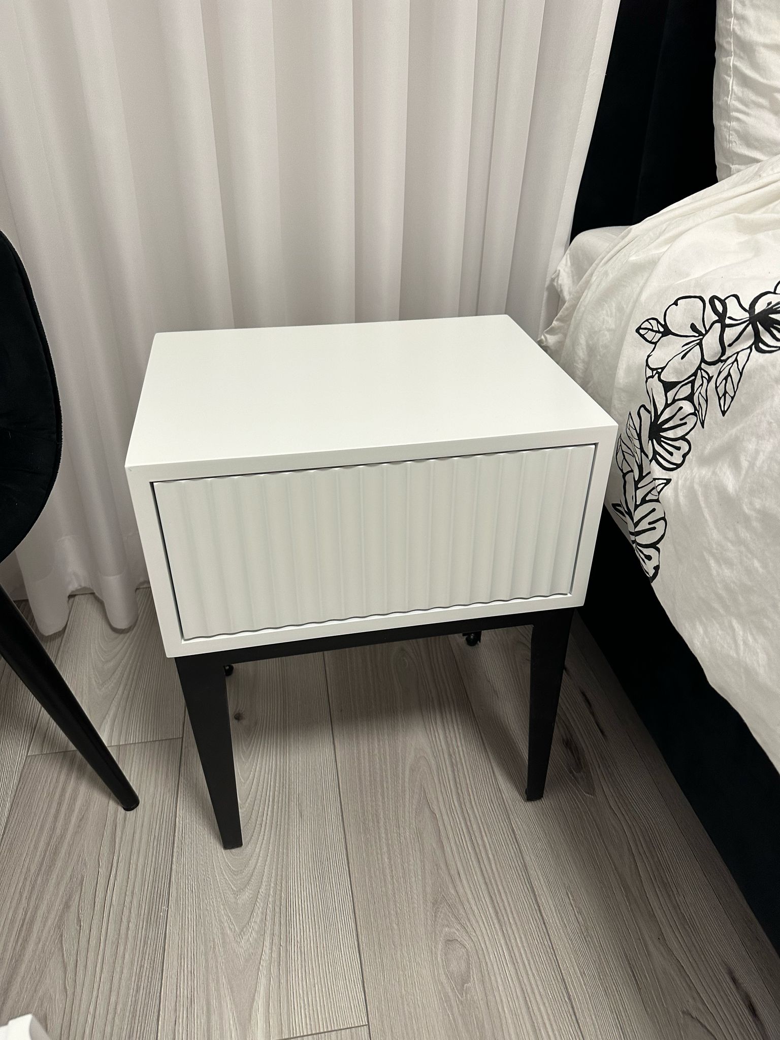 שידת צד "NIL" מרחפת - אלון טבעי מגירה לבנה