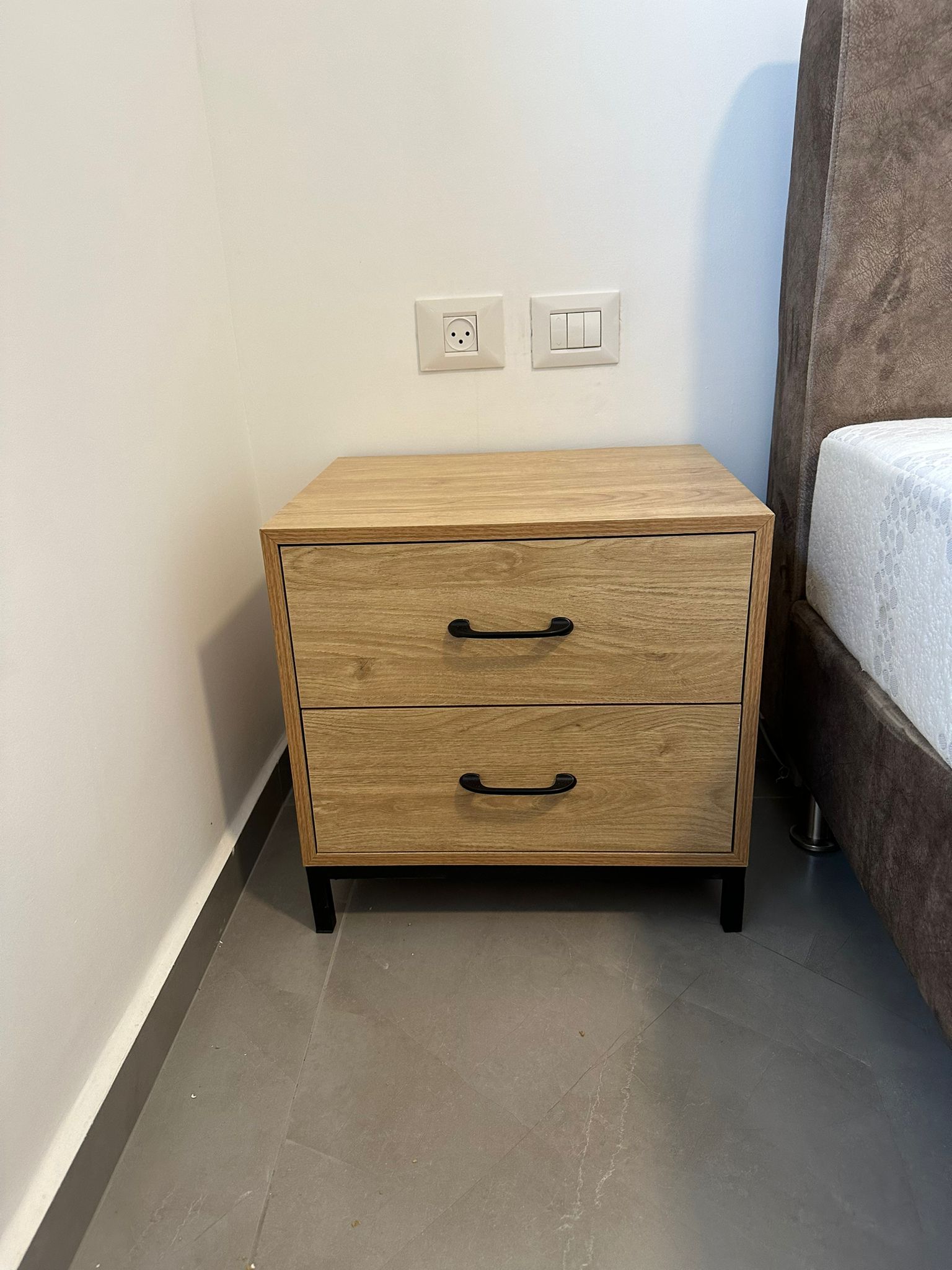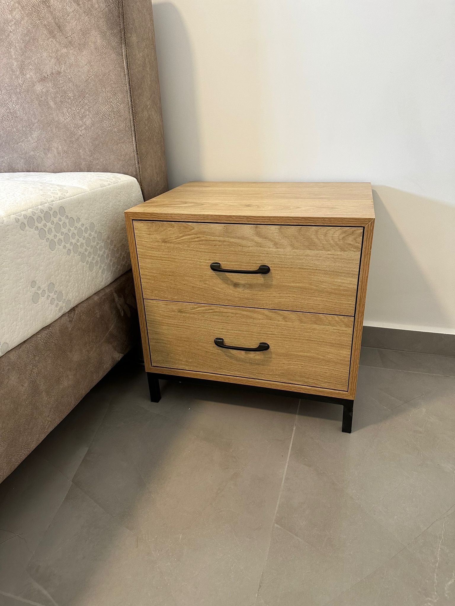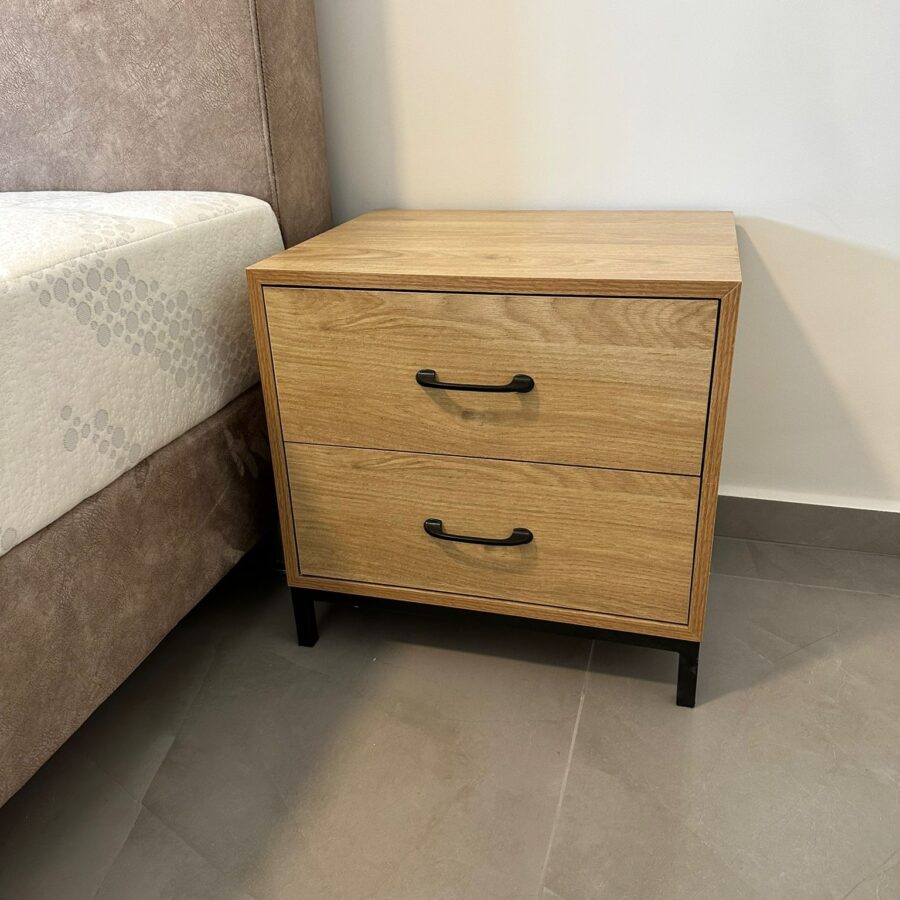 לשידה יש 2 מגירות וידיות בגוון שחור.