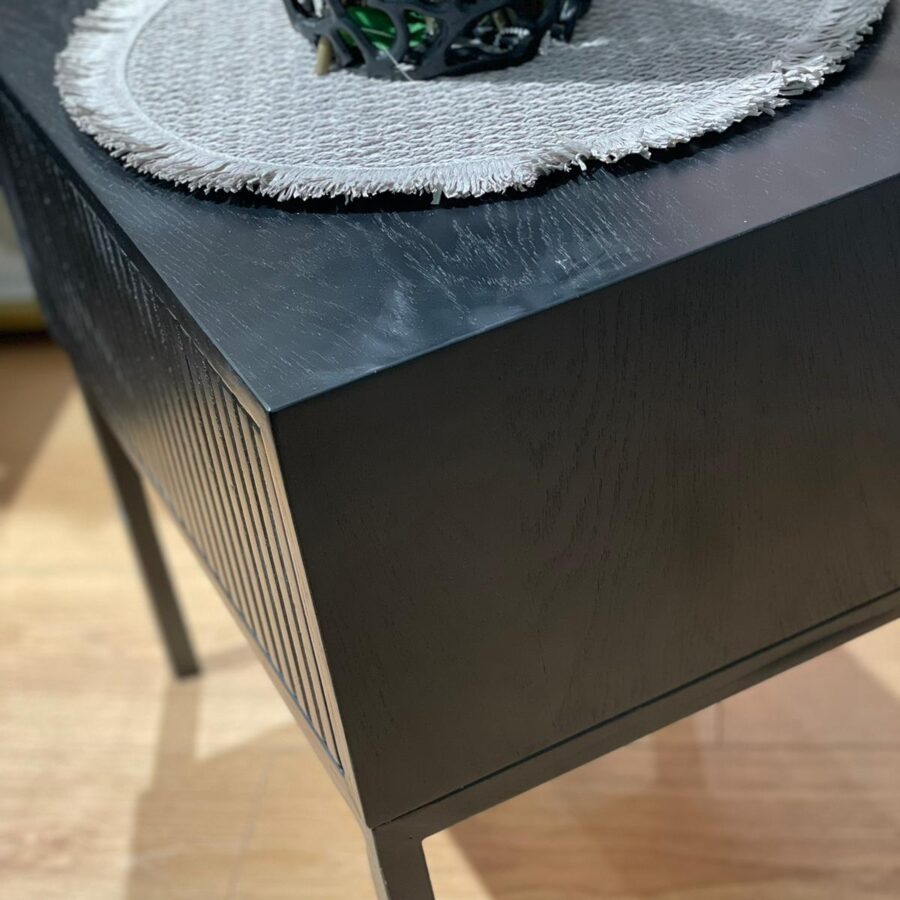 שידת צד עשויה רגלי מתכת בצבע שחור בשילוב עץ פורניר