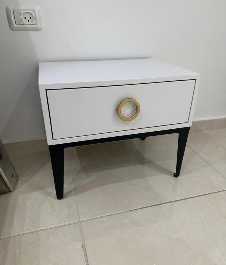 לשידה יש מגירה עם טריקה שקטה מאובזרת בידית בגוון זהב.