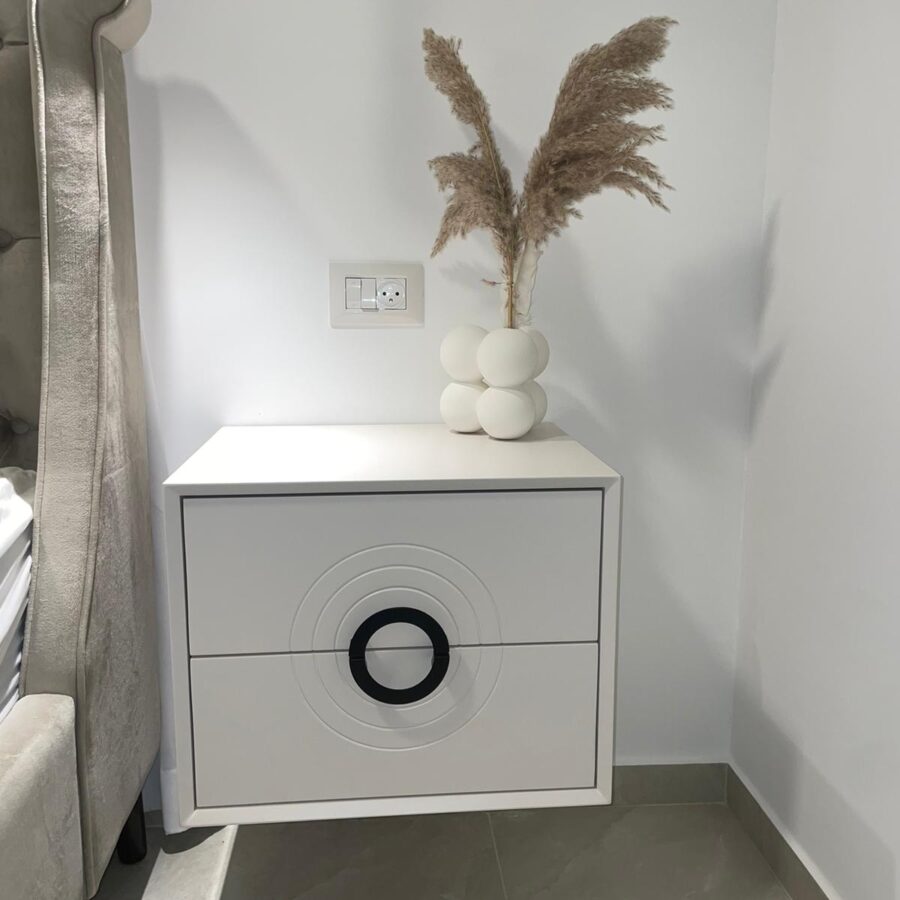 שידת צד מרחפת דגם "GAL" – לבן ידית שחורה